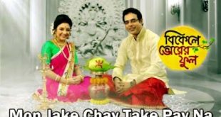 Bangla Song : Mon Jake Chay Take Pay Na Serial: Bikele Bhorer Phool Singer: AritraProgramming: SouravStory & Music: Snehasish ChakrabortyDirector: Bijoy JanaProduction company: Blues Productions Mon Jake Chay Take Pay Na Song Lyrics: Mon jake chy take pay naSwapno amar bhanga aaynaMon jake chi take pay naShopno amar vanga aayna …